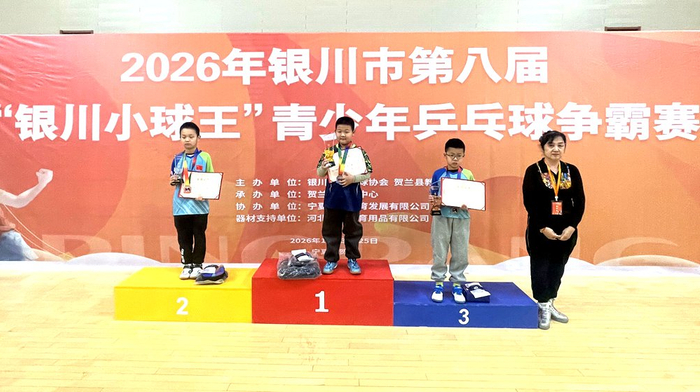 宁夏新闻网讯(记者 尤天竹 文/图)1月25日,为期三天的2026年银川市第八届“银川小球王”青少年乒乓球争霸赛在贺兰县体育馆圆满收官。来自全区的475名小选手齐聚一堂,在赛场上挥洒汗水、奋力拼搏,共同为这场体育“盛宴”画上了圆满的句号。